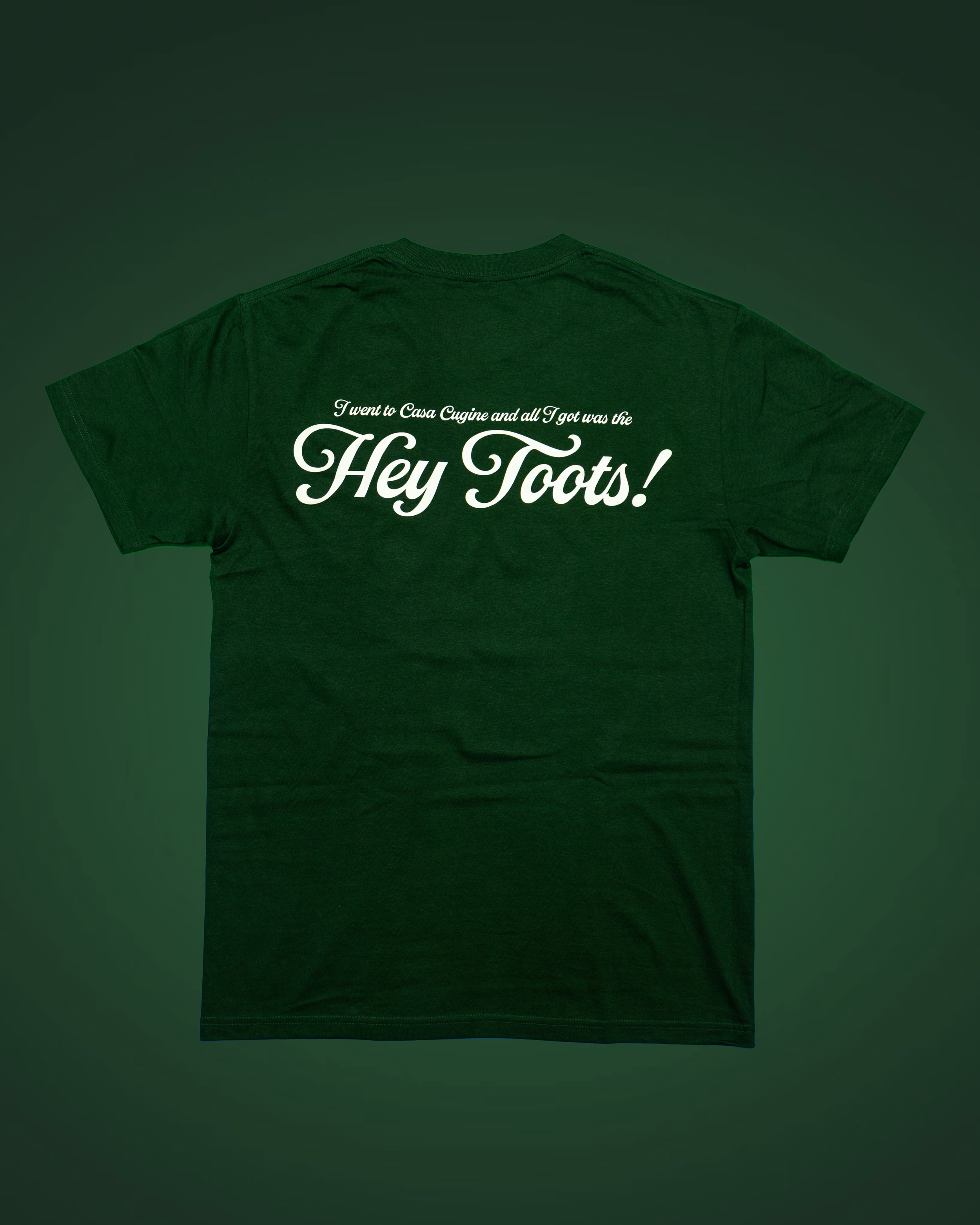 Thanks Cug Trucker $20.00 Hey Toots Tee $25.00 Casa Cugine Tee $25.00 Worker Button Down $100.00 It's a Good Thing For The Neighborhood $25.00 Sold out